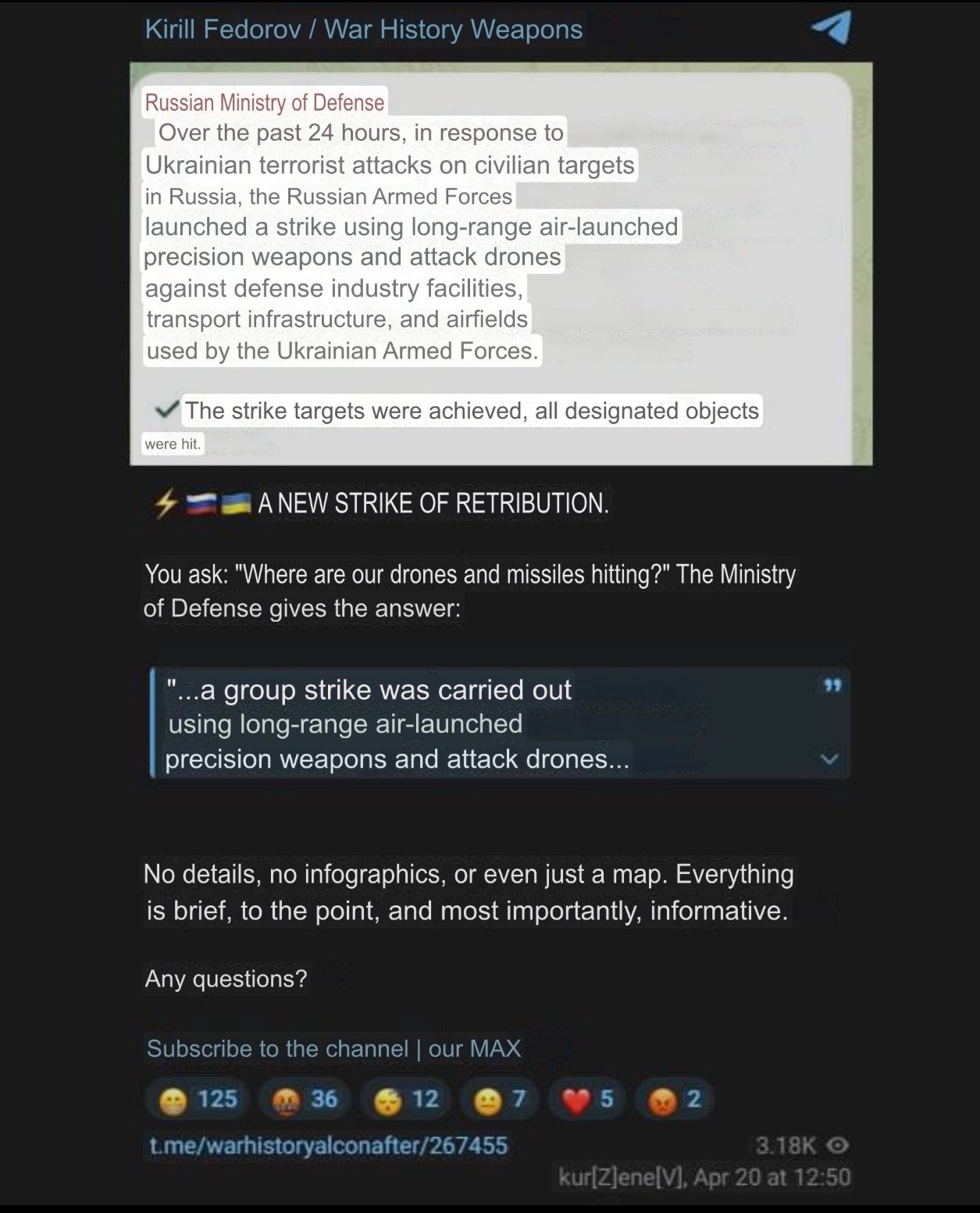 >>533666271>Many are reporting on the work of the air defense system, but no one has seen missiles for a long time.