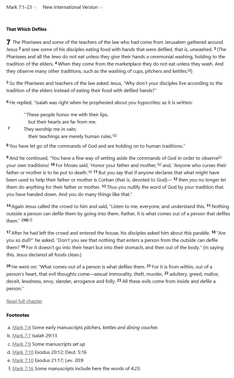 >>533665365>Ad hominem,Logic is literally false and a lie.>statement presented without evidence.The evidence are the countless discussions like this.>before eating bread> meaningless ritualLike YIKES. Imagine being the biggest retard.Question fagot is it good to wash your hands before you eat?>before eating breadDo you wash your hands?Then why did retard jesus start babbling about>Oh yea you do not respect your mother and father! Checkmate! Le hypocrites!> meaningless ritualNot in the text of the bible!!!!!!!!!! Stop making up shit to defend your retard jesus!