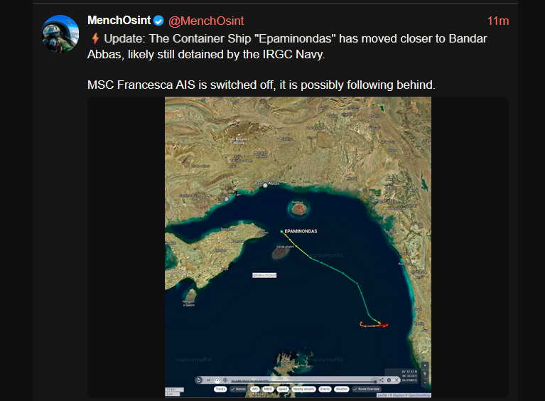 iran taking security custody of the container ship is moving it to bandar abbas
