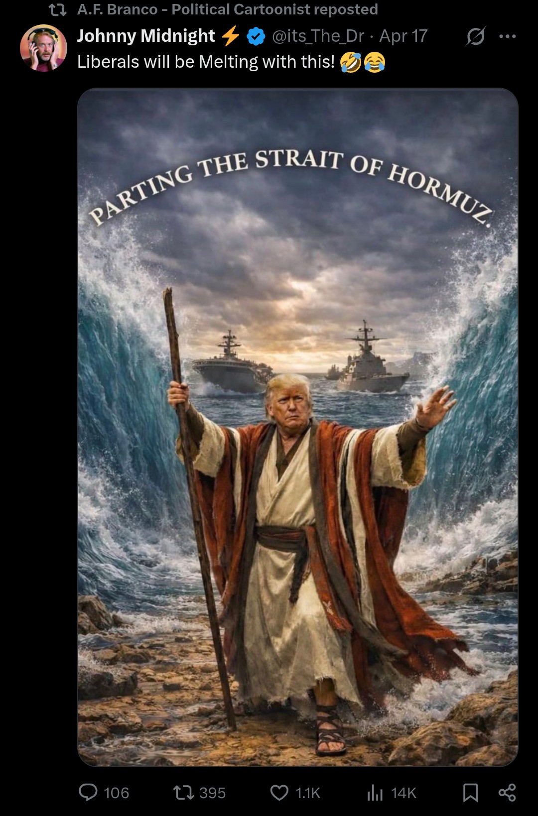 Previous: >>533658333>Don't forget to Submit #1000 OP Pic SuggestionsDay: 15 of the 14-day Ceasefire™ with IranDay: 54 of the 1-day "Special Military Operation™ to decapitate Iran"Day: 6 of the 10-day Ceasefire™ with Lebanon▶RECENT:>Iran fires on 3 ships in Strait of Hormuz, and captures 2 ships, hours after the one-sided ceasefire extension. (New York Post)>POTUS extends ceasefire unilaterally until a peace deal is reached.>Strait of Hormuz: Still closed.>Iran won't send delegates to negotiate till USA removes naval blockade>Haley: Touska headed from China to Iran and is linked to chemical shipments for missiles>US Navy destroyer USS Spruance intercepted Iranian-flagged ship TOUSKA in Gulf of Oman. Vessel in US custody▶WARNING:>Do not trust any "happenings" without link/proof>Uкraine / Яussia discussions belong in uнg or cнug▶Thread Theme: "HE'S A PIRATE" - PIRATES OF THE CARIBBEANhttps://www.youtube.com/watch?v=yRh-dzrI4Z4 ▶Oil:>https://oilprice.com/oil-price-charts▶Cargo Transits through Strait of Hormuzhttps://hormuztracking.com/▶Kino:https://files.catbox.moe/og2wvv.mp4https://files.catbox.moe/dqr3fl.mp4https://files.catbox.moe/jg9rat.mp4https://files.catbox.moe/fx86zj.mp4https://files.catbox.moe/cbd7ug.mp4https://files.catbox.moe/2hwzcx.mp4https://files.catbox.moe/smmsfw.mp4https://files.catbox.moe/x0fbgv.mp4https://files.catbox.moe/86yxn2.mp4▶Live-streams:https://www.youtube.com/watch?v=4E-iFtUM2kk https://www.youtube.com/watch?v=TdcrT5OcS9c https://www.youtube.com/watch?v=53G-Oy4r6M4 ▶Telegram Channelshttps://rentry.org/tgnews▶Israel Rocket Alertshttps://www.tzevaadom.co.il/en▶Air Traffichttps://www.flightradar24.comhttps://flightaware.com/livehttps://globe.adsbexchange.com▶Maritime Traffichttps://www.marinetraffic.comhttps://www.vesselfinder.com