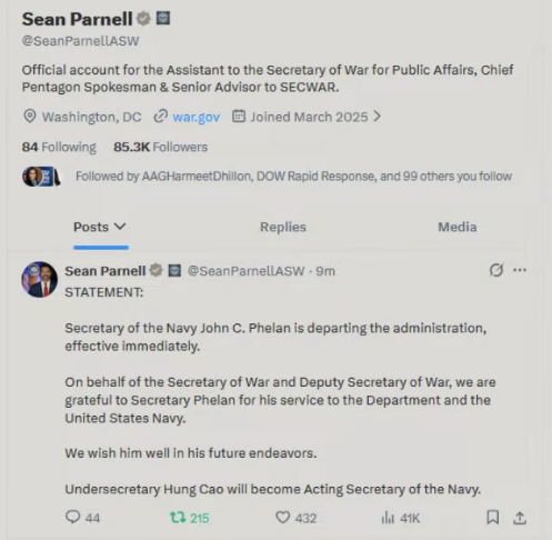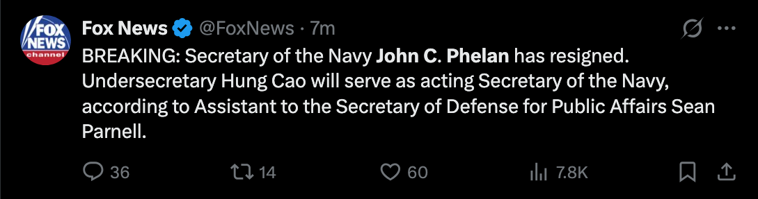 Lookner live if anyone cares. Also Navy chief leaving