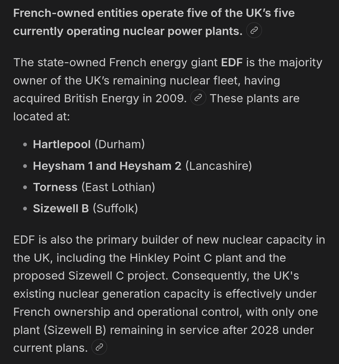 >>533670563We make a killing on their energy grid tbf, it's the reason the germs freaked out and called us a monopoly, soon we'll be majority owner of the island's nuclear power plants and will hold about 30% of British electricity War's not gonna happen any time soon