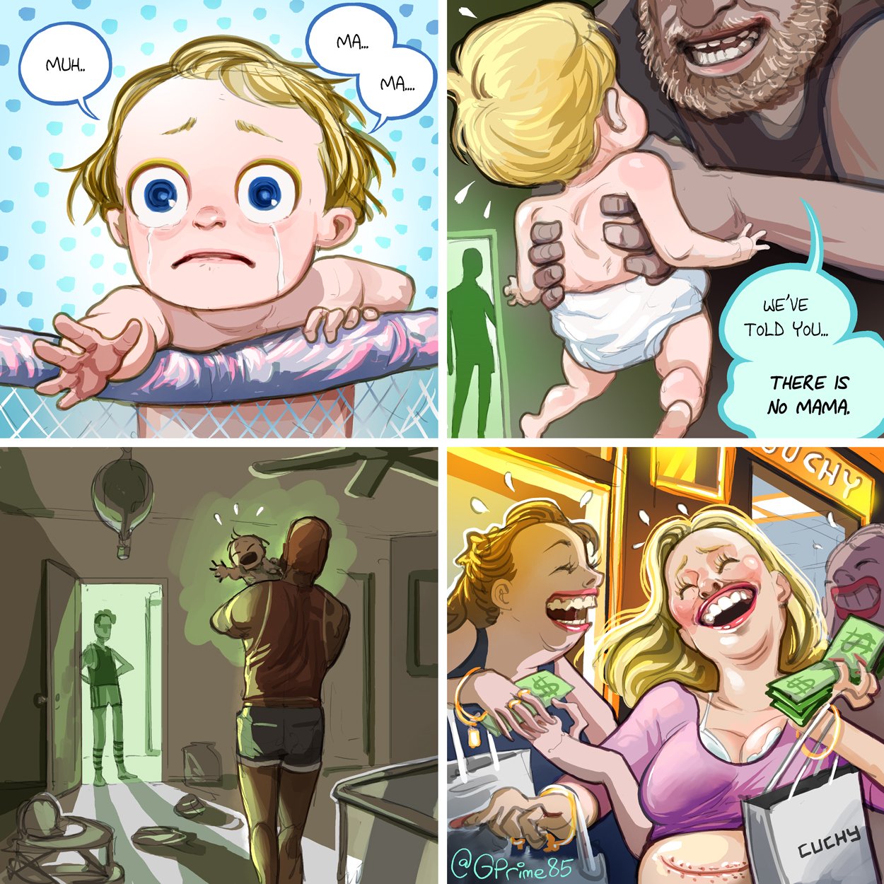 >>533665318>>533665510>>533665495>>533665817Okay because it was washed into my fed:A gay couple had a baby via a suurogate mother.The infant/toddler started to talk.One of the first words to be spoken by an infant are always easy words like mama or papa/tata/dada.He says "mama" in the "viral" video.One of the fathers starts laughing and says: "Haha there is no mama there is dad and papa"Ifant starts crying, father comforts him.The response to this video are people saying the infant is crying for A mother that doesnt exist in this scenario because its 2 fathers.The comic in questiopn posted here is referencing 2 things righ-wing people talk about:1. Homosexuals beeing creepy 2. Women beeing whores and using money like they want