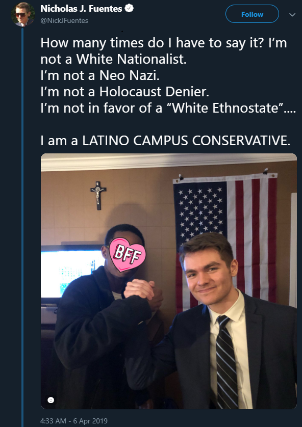 >>533681782>Nick, "I hate the working class" Fuentes>Nick, "put all your information into my payment processor" Fuentes>Nick, "vote for Loomer" Fuentes>Nick, "many of the best groypers are jewish" Fuentes>Nick, "denies Israel killed Kirk more times than Netanyahu" Fuentes>Nick "hangs out with FBI assets" Fuentes>Nick, "doesn't know who Spartacus is" Fuentesmask off, mi hermano kek>>533681909>any of thisOf what? This is a thread about how fuentes is controlled opposition. Allowing Whites to be openly pro White and pro nationalism instead of letting glowniggers give retarded nons a monopoly on third positionist talking points while poisoning the well with to scare Whites away from politics is desirable.