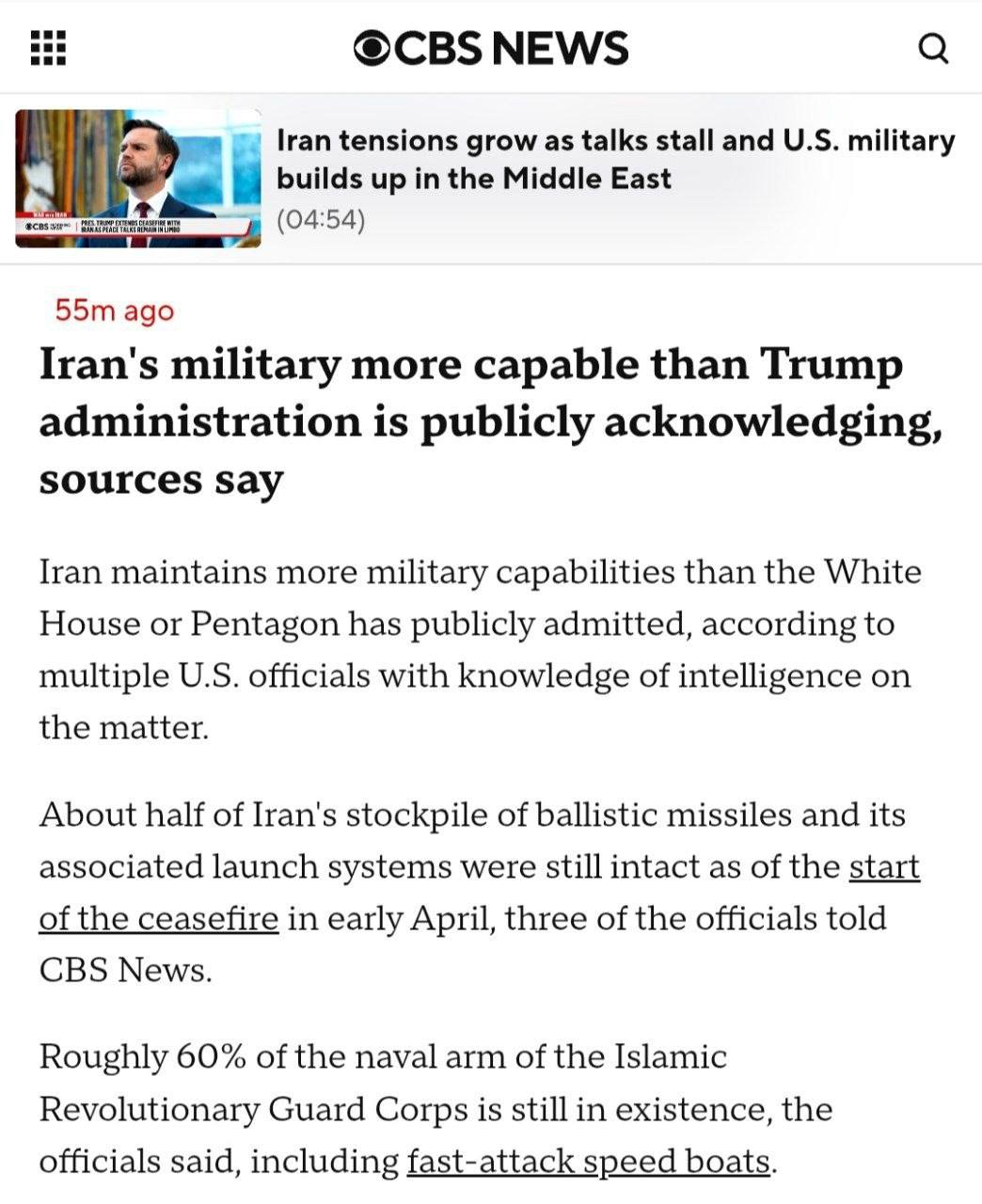 > CBS News: Iran maintains more military capabilities than the White House or Pentagon has publicly admitted, according to multiple U.S. officials with knowledge of intelligence on the matter.Ooops goyim, Iran is stronger than we first admitted. We told you Iran would crush zog.