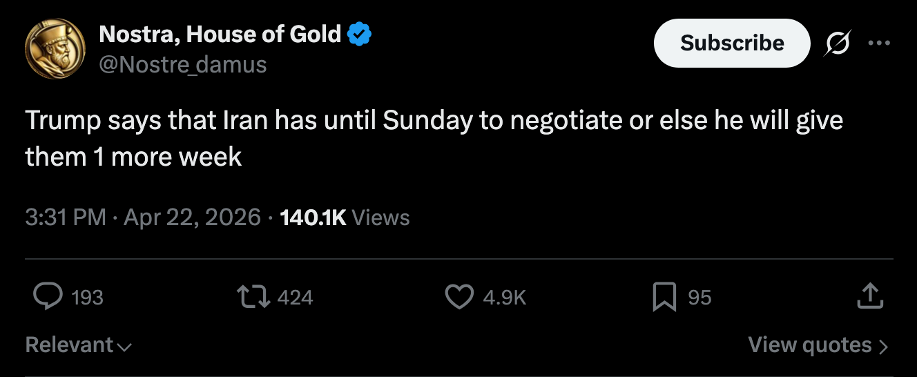 >>533672255fuck sake its actually realnot even reading it lmaohttps://truthsocial.com/@realDonaldTrump/posts/116450605050795046