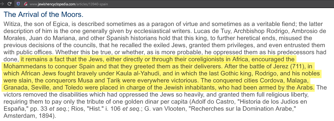 It was the Jews that in 700AD led the Moors (Muslim nigger invaders) to Spain and opened the gates of Cordoba.