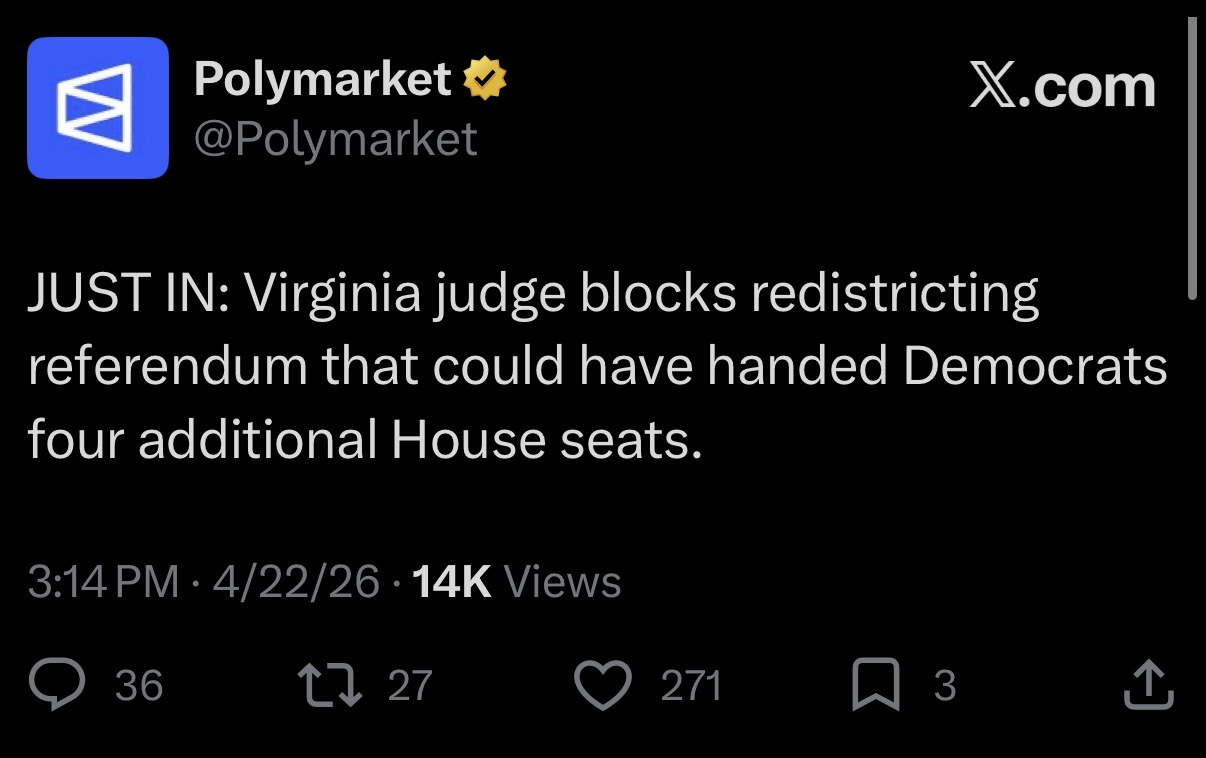 Virgina judge blocks redistricting referendum.