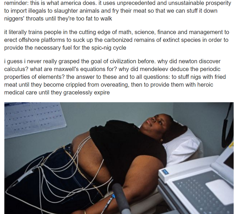 >>533679958I'm not saying that USA doesn't have the bones as a territory to be a big producer because it certainly does, but the problem is that you aren't the vision of a White Nation the Founding Fathers wanted and codified into law, with your amount of useless eater browns that simply isn't happening, you can't just magick a 200% production increase out of thin airI guess some people have realized that all the real opposition died in 1945 and the world is doomed to become a brown shithole anyway, so better go to the kike nest where are the money is concentrated if everything is going to fall apart anyway