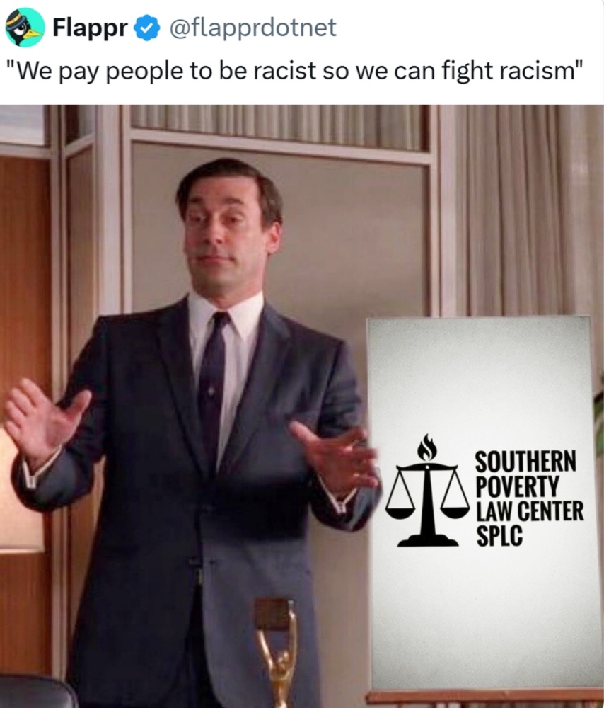 I wonder if the SPLC is behind Nick. The Patriot Front turned out to be one of those groups. That was pretty sloppy and obvious. Everyone saw through that one, but I thought it was just glowniggers.