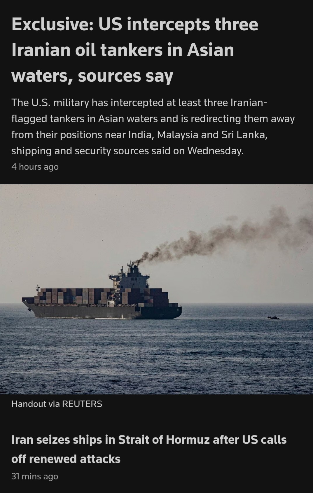 This is illegal and a clear breach of international law, 1/4 of the world oil supply is stuck there, why the fuck can't the EU or China kick out these fucking mutts.