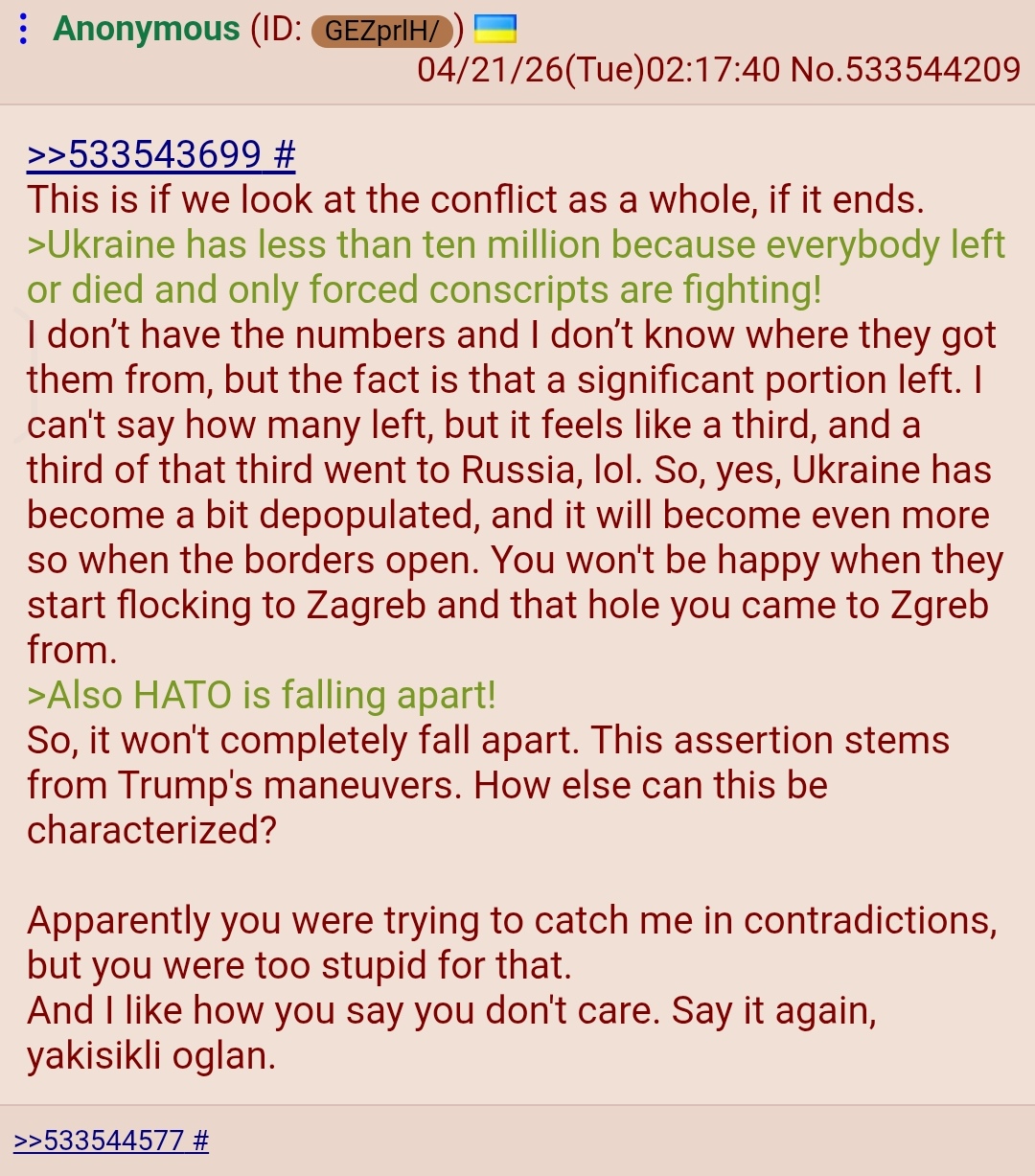 >>533685805>Victory for Ukraine is inevitable, after all.you mean loss? lmao how's that birhtrate?