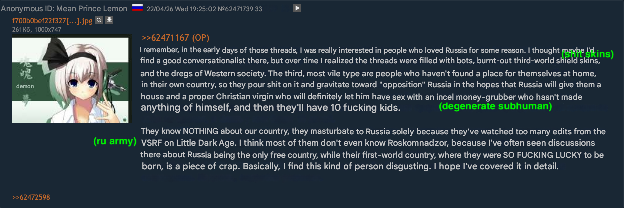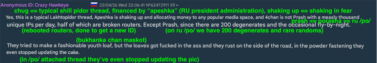 >>533694850>it's possible that it's ukrainianThat specific talking point "who gives you money" and such is long-term RU propaganda. He's the crimean troon.
