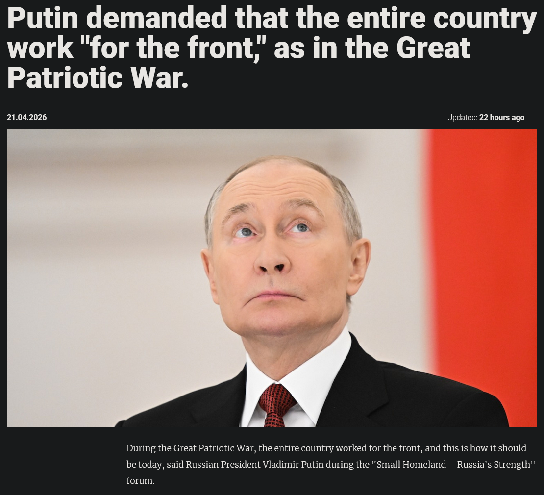 Previous: >>533668072Day 1,519 – Daily assessment: understandingwar.org/analysis/russia-ukraine/#research▶Latest>EU's €90bn loan for Ukraine and the 20th sanctions package against russia provisionally approved; formal procedure to conclude on Thursday, EU presidency says>Ukraine has repaired the damaged section of the Druzhba oil pipeline damaged by russian shelling - Zelenskyy>Smoooking accident at the Tuapse refinery>Smoooking accident at the Fosagro chemical plant in Cherepovets>Szijjártó (orbán's FM) has barricaded himself with some of his closest colleagues and is shredding documents related to the sanctions on russia and any other evidence of treason>Hungarian PM candidate Magyar talks of 'pragmatic' ties with moscow but clearly sides with Ukraine on war: russia is the aggressor in the war, Ukraine has the right for self determination, Ukraine's territorial integrity must be respected, etc., he is happy with the €90bn Ukraine deal as agreed in December last year (which included an opt-out for Hungary)>Magyar does not support Ukraine's fast-track EU accession but he will do everything in his power to diversify oil and gas sources and routes for Hungary (=less reliance on russia)>The kremlin will not congratulate Magyar on his election victory in Hungary; it is an unfriendly country - Peskov>Opposition party TISZA gains 2/3 supermajority in the Hungarian parliamentary election (orbán on suicide watch)>After 16:00 and by day's end, 1,723 russian ceasefire violations were recorded>Ukraine reaches a milestone: making ‘China-free’ drones▶Telegramrentry.org/telosint2023t.me/ukr_pics▶Intelt.me/DeepStateENodin.tradoc.army.mil/WEG (equipment explorer)ukr.warspotting.net (visually confirmed losses)▶Mapsdeepstatemap.live/enliveuamap.com/en▶DISPOSABLE SOLDIER (diary of a RU mobik)TOURS 1-4: files.catbox.moe/mpcw7p.zip▶12 min of TZD in one ditch (Pokrovsk area) - 28 killedfiles.catbox.moe/sxbxfb.mp4