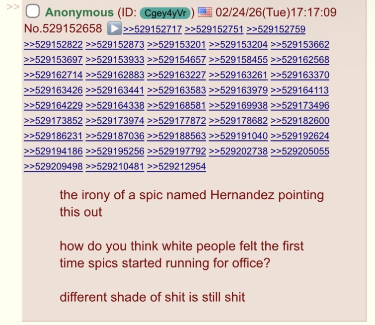 Kek, for some reason this board is very sensitive whenever someone speaks badly of spics. Not everyone who's anti-spic is a fucking jeet damnit
