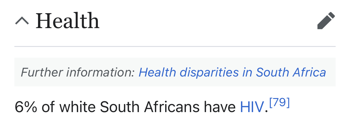 >>533691524>13% of the population at large have hiv>whites have a rate half of the averageSounds more like a regional issue mate, they are in the aids zone with very little support, diagnosis, or treatment. It's a very difficult disease to control without free medication and frequent testing. One doesn't get sick for years and it can spread it around in that time.