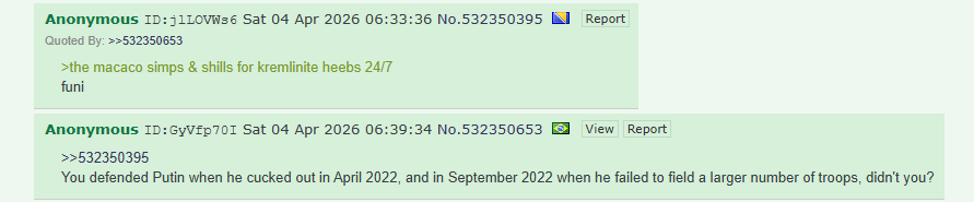 >>533701661>>533701692>i will venmo 100 jewmerican dollars to anyone who finds me a macaco post even remotely critical of pootin or chudtriev