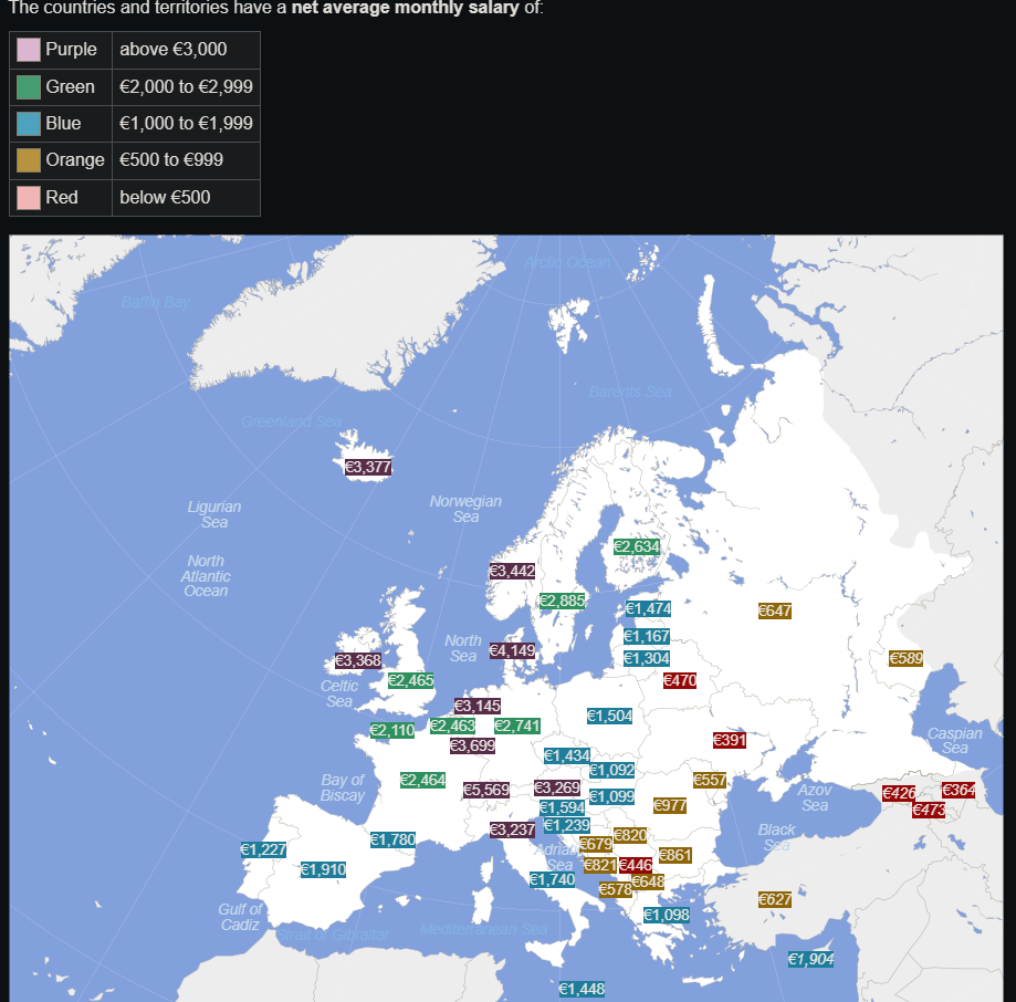Net average salaries in Europe