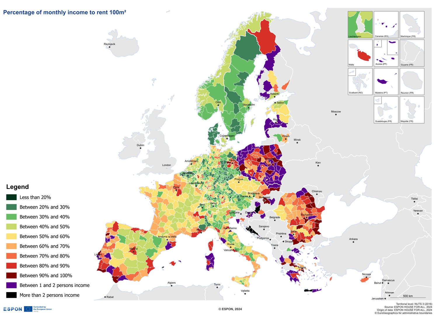 Percentage of monthly income to rent 100m2