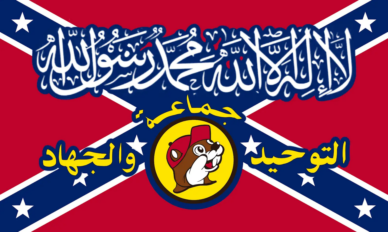 >>533706280i genuinely find the flag very funny too. call me an autist or simpleton but the idea of throwing a hammer and sickle on a nazi flag is pretty funny, like how the buccees caliphate flag is funny. these things dont go together and its very funny to me when they do