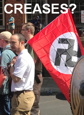 >>533703635>those factory creases in that swastika flag.The fucking audacity of these people.Remember that one time when a guy tried to roll out a nazi flag at a trump rally and everybody beat the shit out of him?That was funny.Fucking glowniggers.