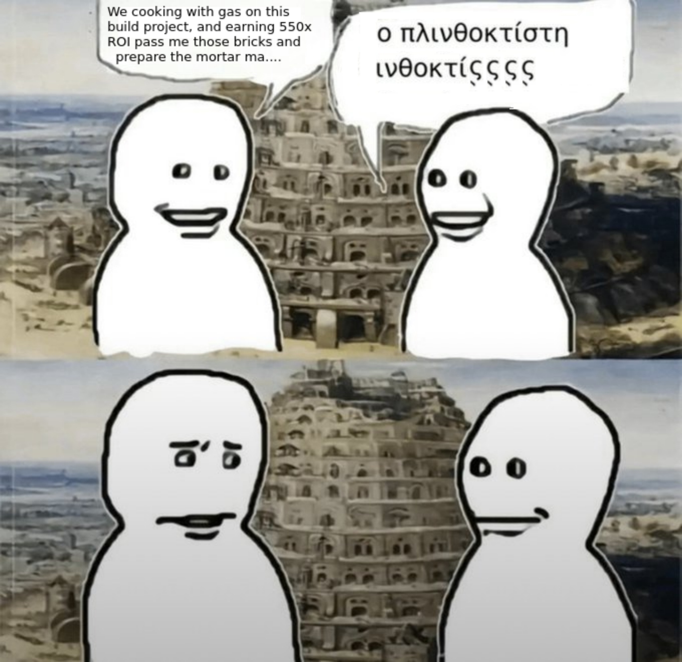 >>533704156I don't know how we are discussing elemental things, the tale of Babel is about a tyrant forcing enslaved people to build megastructures while the tyrant thought they could displace god.God confused the tongs liberating the slaves, the tower was not destroyed, but Nimrod reign was over.