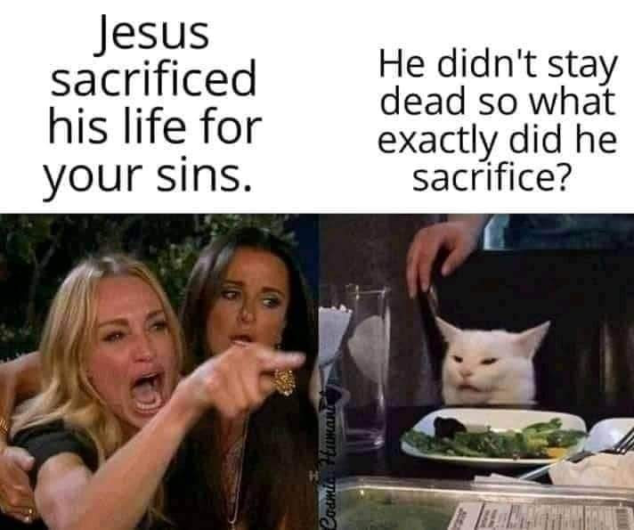 >>533706675No, the Pharisees killed Jesus because all of man is evil for knowing evil. They used the law for evil, which the point of using the law was to show us that we’re sinners (evil). It was also to reveal that religion is a satanic counterfeit that Satan wants man to worship him through. The knowledge of good and evil is a moralist dialectic. Secularism and religion were born out of it as a result of man having a guilty conscience. There’s nothing turbo heretical about Paul’s writings like some “Christians” believe because Paul disowned religion entirely when he said “sin taking advantage by the commandment slew me.” Which is exactly what the Pharisee did to Jesus thinking that God giving Moses the commandments, was God asking man to make religion around them, not understanding that the entire fucking point was to give man context for faith by contrasting religion with the cross. Which was the entire point of the sacrificial system. To prepare man to understand what God actually wants.Belief. And it doesn’t require work at all.Lol lmao.