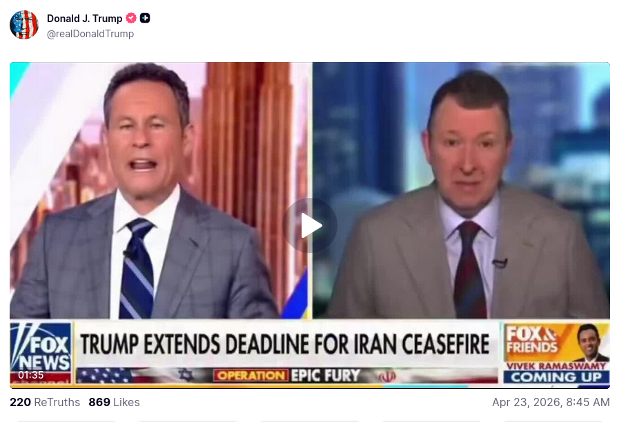 >>533707875it's the truthsocial cdn, loljust delete everything after the ?here, see for yourselfhttps://truthsocial.com/@realDonaldTrump/posts/116454084432361586https://1a-1791.com/video/fww1/a2/s8/2/g/Q/M/h/gQMhA.caa.mp4