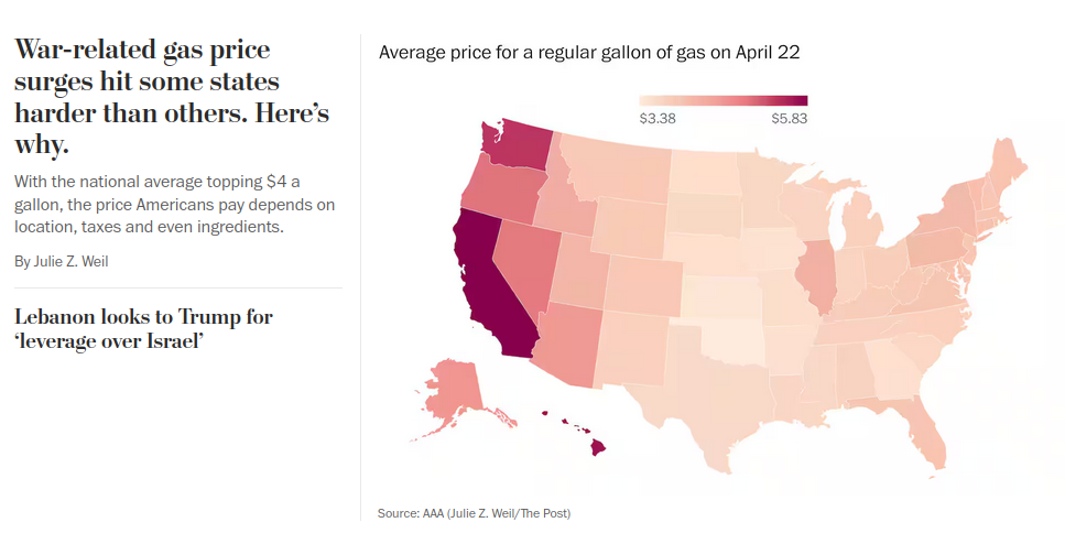Damn Washington Post, those gas prices really are surging. Wild how demonrat worst coast strongholds are most affected by Iran.https://www.washingtonpost.com/business/2026/04/23/gas-prices-lowest-highest-by-state/also fuck you Archive Today. Unfuck your shit and make your site usable. I don't like using Megadolan.