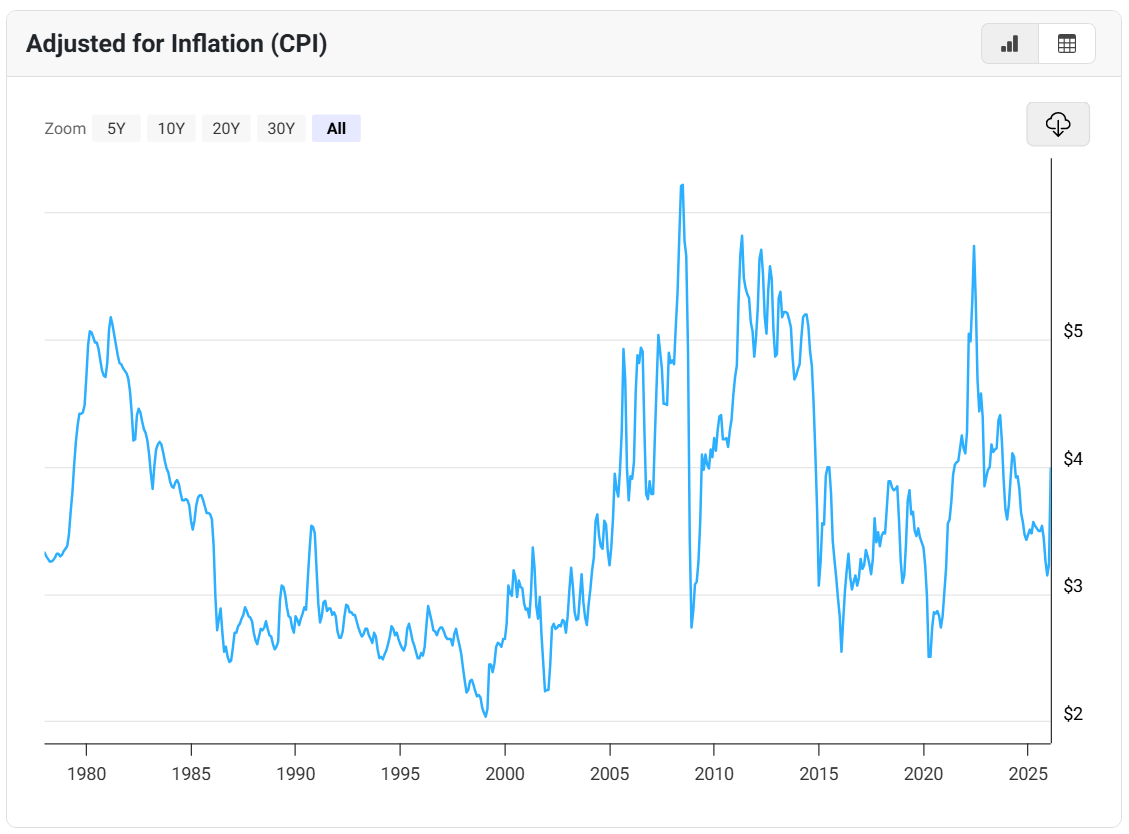 >>533710684you're using biden as a tool to not make trump's gas prices look awful in comparisonliterally if you take out the spike of the russian war trump has the worst gas prices of the decade right now