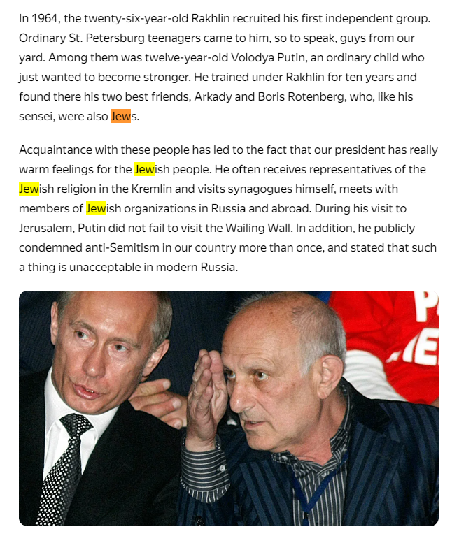 >>533709121Kek why do russian shills try to sell this. No one is buying it. Putin literaly takes orders from chabad. Oligarchs just rob russia and flee to izrael. No asasinations unlike in case of jurnalists. Russia is the most jewish controlled country in Europe. Thats not an exageration.