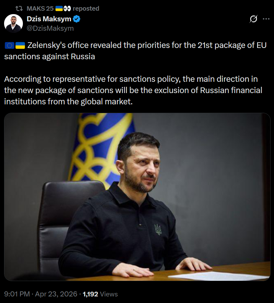 >- EU imposed the 20th package of sanctions on Russia. They will work this time