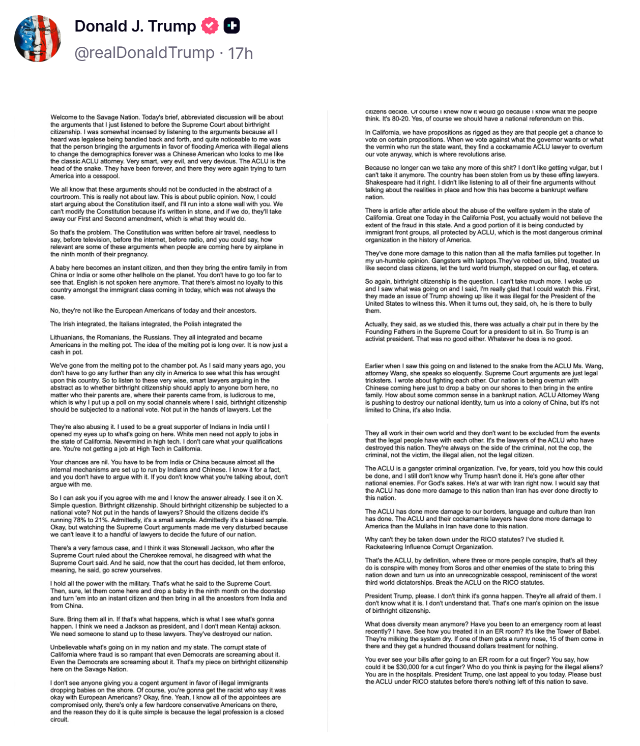 >>533716319>brief>it's an abbreviation of abbreviation >ESL mind blown>Trump defeats the purpose by making it the opposite of briefstupid