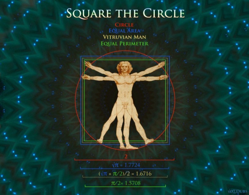 >>533730571do you understand the vitruvian man?the center of the circle is the navelthe center of the square are the genitalsit squares the circle not by area or circumference, but the mean between bothyou don't even understand the meaning of this or the unlikely hood of this happening by chancewake up and rise human, know yourself