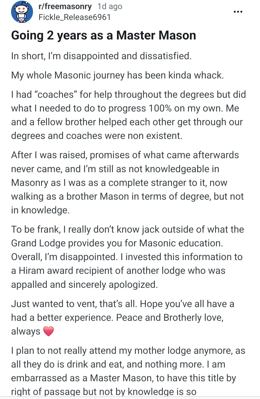 >>533732847but you will be very disappointed if you join your local lodge in hopes of getting deep esoteric knowledgethe first degrees are a filter to sort out the retards