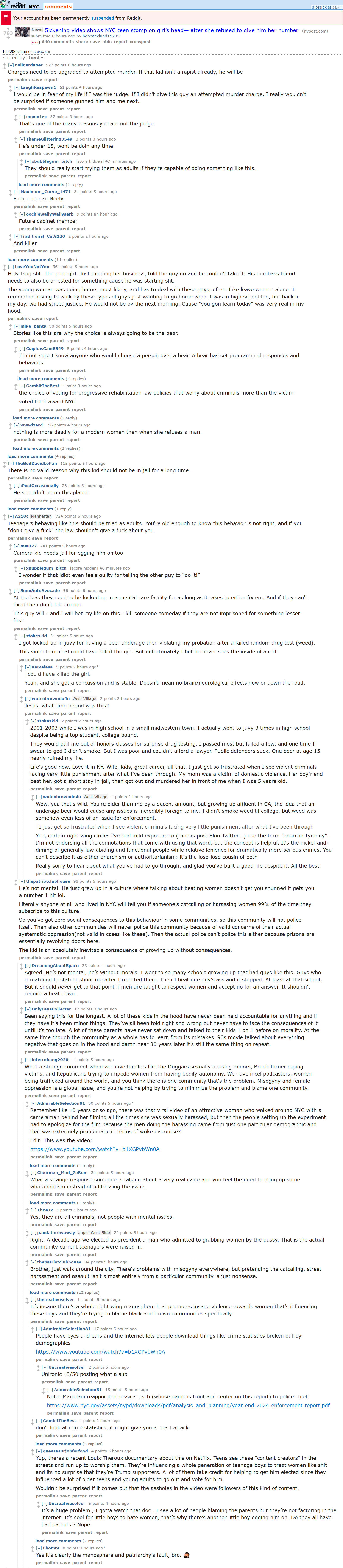 >>533719897https://old.reddit.com/r/nyc/comments/1stkt95/sickening_video_shows_nyc_teen_stomp_on_girls/