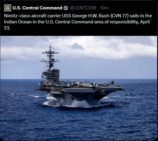 Three aircraft carriers in the Middle East: The US military announced that the aircraft carrier George H.W. Bush has officially entered the command area of CENTCOM
