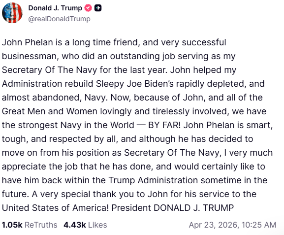 >Drumph's Secretary of Navy got FIRED because he refused to-ACK!