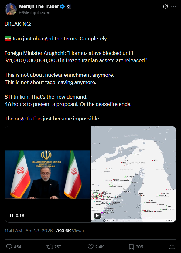 >Iran’s Defense Ministry spokesperson:>The production process of military equipment has never stopped, and will never stop. It’s continuing with full force.Lots of hawkish signals from both sides, probably ceasefire collapse this week
