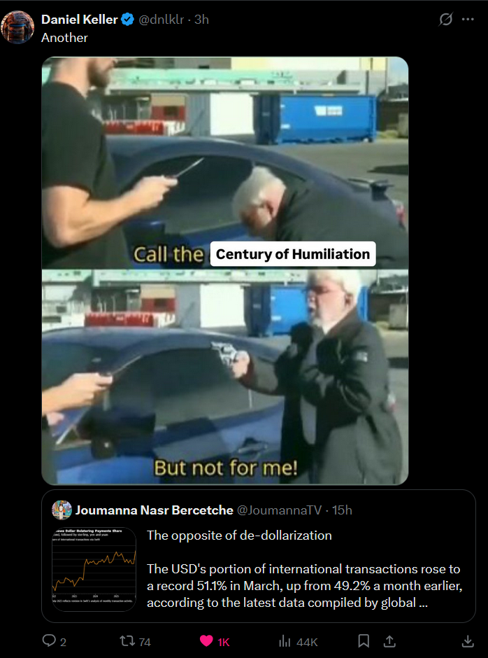Strait status?Petrodollar status?Hegemon status?Banan status?
