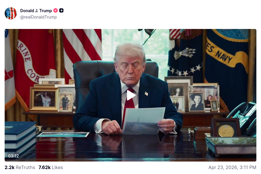 PRESIDENT DONALD J TRUMP @POTUS45https://www.donaldjtrump.com/https://www.thetrumparchive.com/https://x.com/realDonaldTrumphttps://truthsocial.com/@realDonaldTrumphttps://rumble.com/c/DonaldTrumphttps://www.tiktok.com/@realdonaldtrump>President Trump Officehttps://www.whitehouse.gov/https://www.youtube.com/user/whitehousehttps://www.flickr.com/photos/whitehouse/>Liz Harrington (Trump Spox) https://twitter.com/realLizUSA>Donald J Trump Presidential Libraryhttps://www.trumplibrary.gov/@realDonaldTrump @TeamTrump @TrumpWarRoom>b-but Trump hasnt done anything!ARCHIVED LINKS https://pastebin.com/eAhgNyeX NEW APPEARANCES>Pres Trump Talks at TPUSA, Phoenix, Arizona 4/17/2026https://www.youtube.com/watch?v=mg5Cr_FDHR0>Pres Trump Delivers Remarks on Tax Week, Las Vegas, Nevada 4/16/2026https://www.youtube.com/watch?v=mpKpfdZitCM>Pres Trump Speaks With the Artemis II Astronauts, Washington, DC 4/7/2026https://www.youtube.com/watch?v=u04P_rSXJ4U>Pres Trump Press Conference, Washington, DC 4/6/2026https://www.youtube.com/watch?v=xFO-SY9ykdA>Pres Trump Address to the Nation, Washington, DC 4/1/2026https://www.youtube.com/watch?v=OzhLRPZfOMQ>Pres Trump Cabinet Meeting, Washington, DC 3/26/2026https://www.youtube.com/watch?v=Sse9HAmQtD0>Pres Trump at Memphis Safe Task Force Roundtable, Memphis, Tennessee 3/23/2026https://www.youtube.com/watch?v=jwwjmWKMWjM>Pres Trump Commander in Chief Trophy Presentation, Washington, DC 3/19/2026https://www.youtube.com/watch?v=u-OC21Mk_WY>Pres Trump Meets Prime Minister of Japan, Washington, DC 3/19/2026https://www.youtube.com/watch?v=1jgFkp02qFM>TrumpVideo: WE WILL WIN 6/19/23https://rumble.com/v2v6m2a>MAKE AMERICA GREAT AGAIN, AGAIN! 10/28/21https://rumble.com/voe8gm>God Bless the USA (Donald J Trump) 10/20/16https://youtu.be/O_PC_fy0fk0 OP pastebin: http://pastebin.com/pxxNb2Xzprev >>533716340
