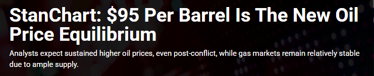 >95 dollars a barrel is le new normalWhen oil is this high everything goes up, meaning people buy less, meaning jobs get laid off and fewer created. The US is in a depression no matter what, and it will get worse and worse as the year goes on. Even if the strait reopened right now then this would remain true because of the backlog of thousands of tankers would take months to offload. And the US is still on strategic reserve fuel for the next couple of months.Beyond that, the damage to oil infrastructure in the gulf would take the rest of the year to repair even if it was repaired quickly.That isn't even considering the loss of fertilizer, food shortages are now a given.https://oilprice.com/Energy/Crude-Oil/StanChart-95-Per-Barrel-Is-The-New-Oil-Price-Equilibrium.html