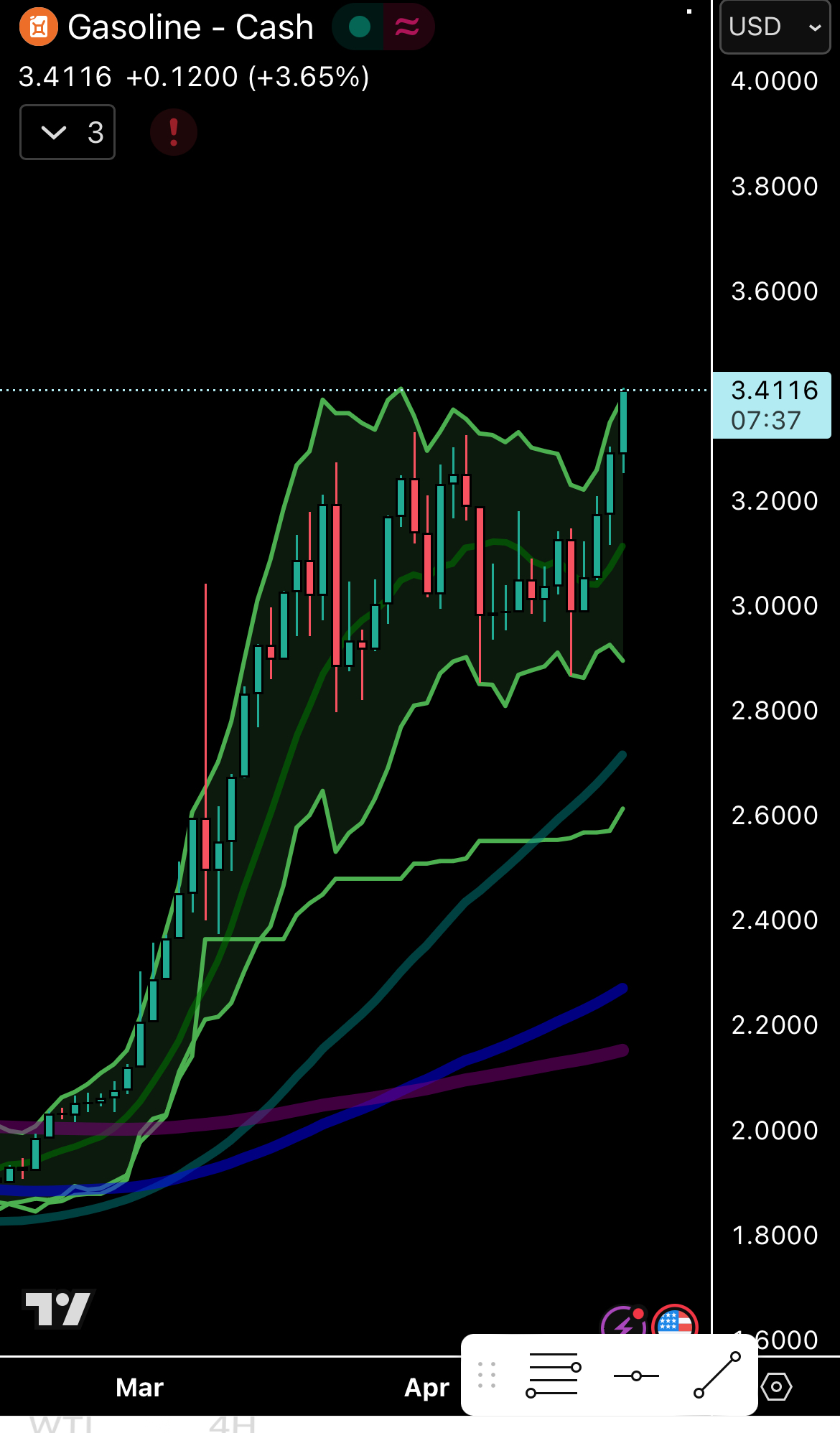 >>533734181Also, the spot is higher. $3.48 right now. Pretty much guarantees most states will be over $4 by the end of the week, not just by average.