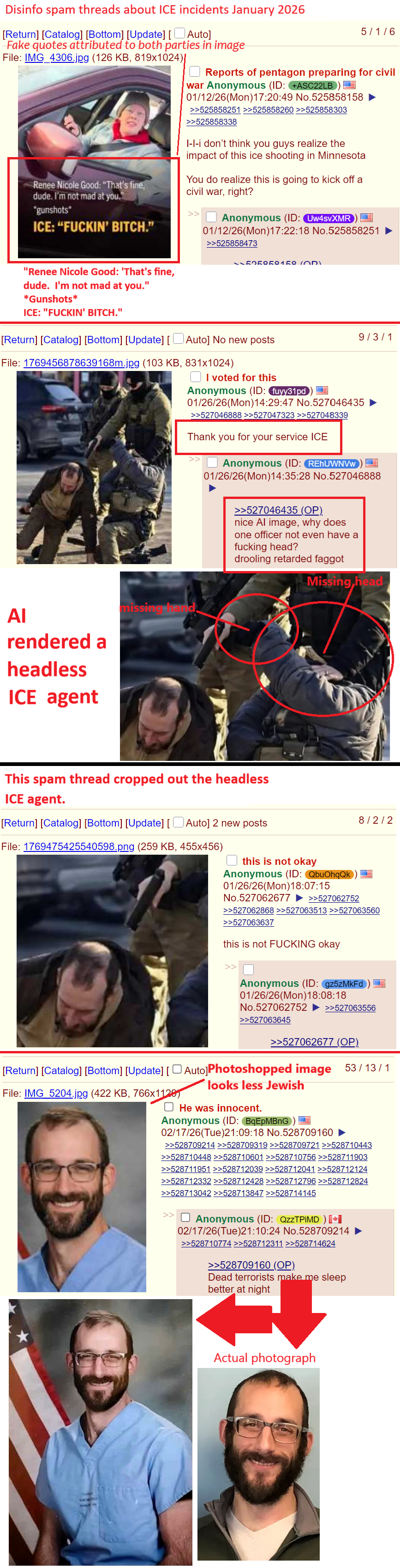 >>533733719The misinfo spread far and wide, but the corrections and footage showing what actually happened didn't spread much at all.My boomer mom still thinks Renee Good never even got close to the cop, even though i've showed her the footage multiple times before.