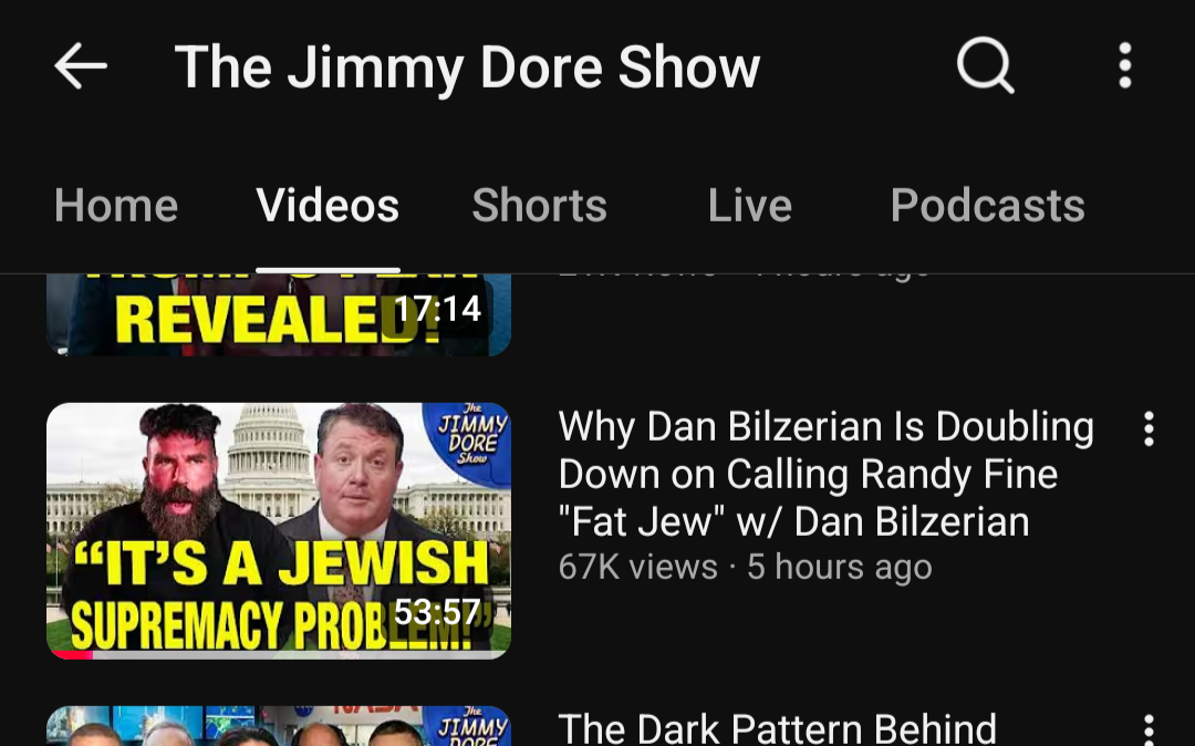 Jimmy is learning to connect the dots. He did a whole 1 hour interview with dan letting him say it's the Jews with no push back and being supportive