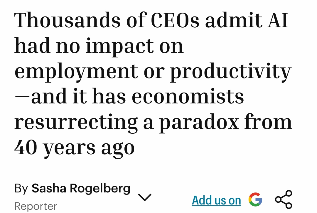 >>533742948AI has had an impact on employment and productivity>Cut huge amount of jobs>Reduced the educational requirements for heaps of work>Enabled huge digital transformation changesThe only issue is it didn't really work the way it should have, which is:>Flattened structure of businesses to enable actual work because AI and tech has made most middle manager redundant>No one is getting paid more to do better work, the only incentives these days are middle management jobs on 6 tiers of reporting chains>Any companies which had smart enough leadership culled most of these positions in COVID or far before that when admin was wiped out by teams meetings recordings and basic microsoft toolsThe issue is the entire west revolves around the gate keeping of the Professional-Managerial Class.
