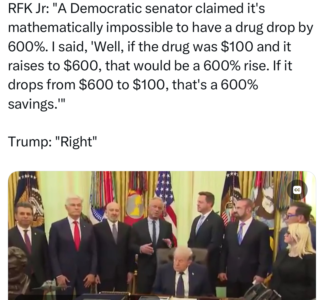 No one understands what was meant. A 600% drop in price is very, very improbable, because it would be a negative number which would imply the company is paying you to take the drugs.