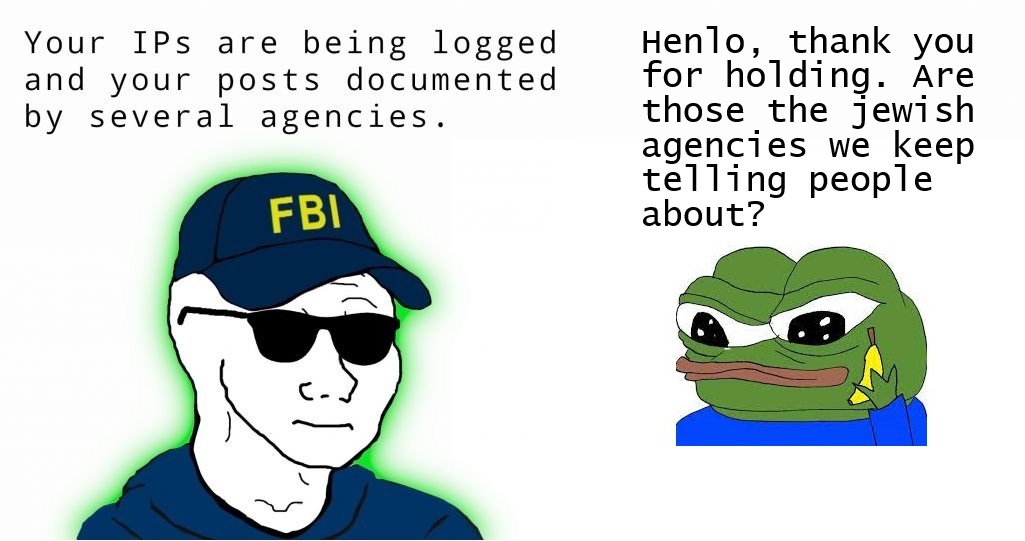 >>533746199>Mr. Anon, we're with the FBI. We wanted to talk to you about some of your online pos->Warrant?>Well no, but your antisemiti->*Close door in their face*