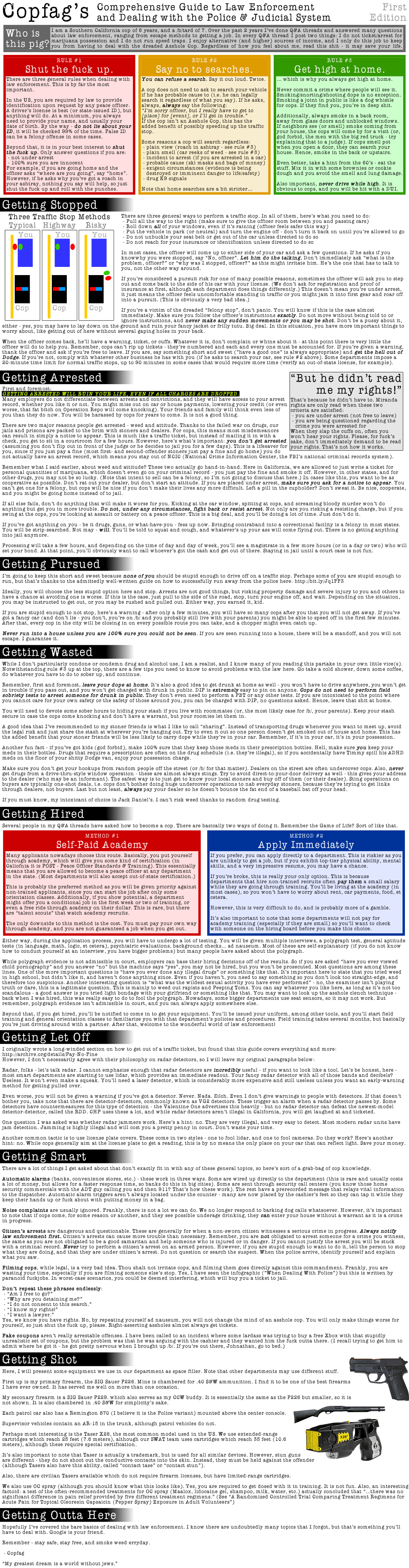 >my houseNo family here.>neighborsDon't know em.>okay but say your family was thereThey know I'm some level of schizo anyway and I post a lot of weird stuff and can argue it better than they can>OKAY SO WHAT IF WE SHOW YOUR PORN HISTORYGo ahead I don't careThis is the power of being unemployed and therefore unfireable.We have the first amendment for a reason, to prevent exactly this situation.>teen talked to copsRookie mistake, he should have claimed fifth and sixth amendment and called a lawyer and otherwise shut the fuck up.