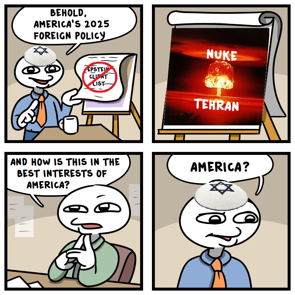 What’s Bibi’s actual endgame? He’s facing all sorts of charges, he’s a war criminal subject to arrest in a bunch of EU countries. Is eternal war his only option? I’m not at all fond of the antichrist fwiw